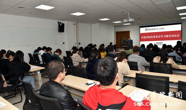 二要注入红色基因铸魂育人。紧紧围绕立德树人这一根本任务,坚守为党育人初心,牢记为国育才使命,汇聚红色资源、注入红色基因、寻找红色钥匙。通过党史学习教育,全面开展红色教育,引领师生永葆赤子情怀、争做时代先锋。要将党史学习教育与学院发展谋篇布局相结合、与师生立足岗位做贡献相结合、与解决教师实际问题促进学生健康成长成才相结合。要推动学院高质量发展,向改革要效益、向开放要速度、向创新要质量,持续推进水-土-气-生-环学科生态建设,推进“双一流”建设,全面提升学院核心竞争力和综合办学实力,努力打造新时代培育红专能优生态环保铁军的摇篮。
