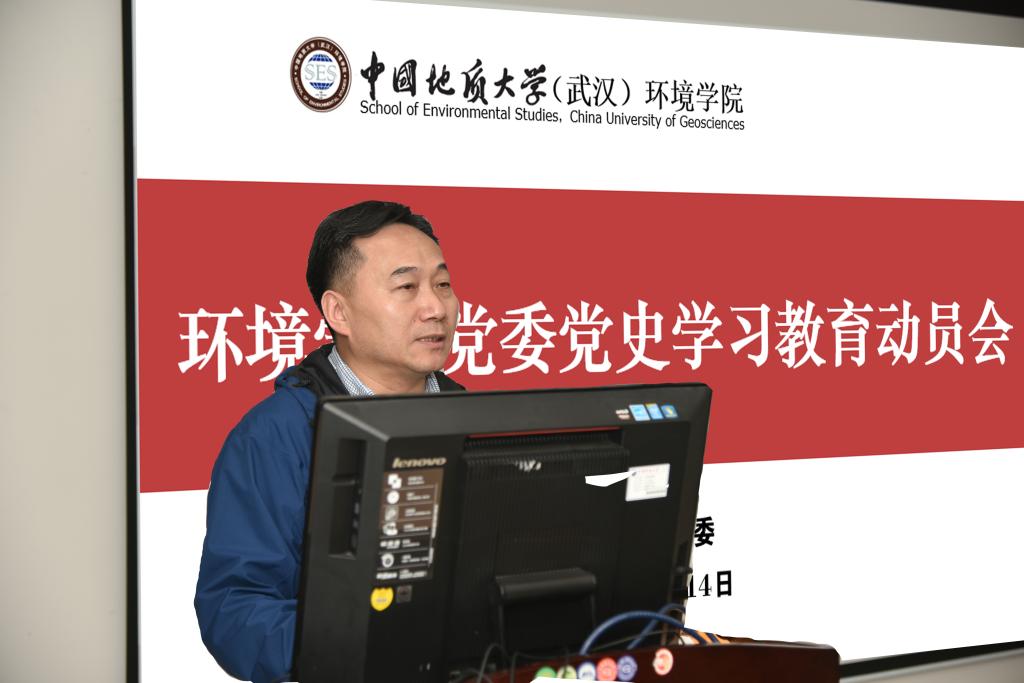 李素矿作党史学习教育动员讲话。他首先带领大家一起学习习近平总书记在党史学习教育动员大会上的重要讲话精神;传达了党中央、教育部党组、湖北省委、学校党委关于党史学习教育动员大会主要精神和部署要求。