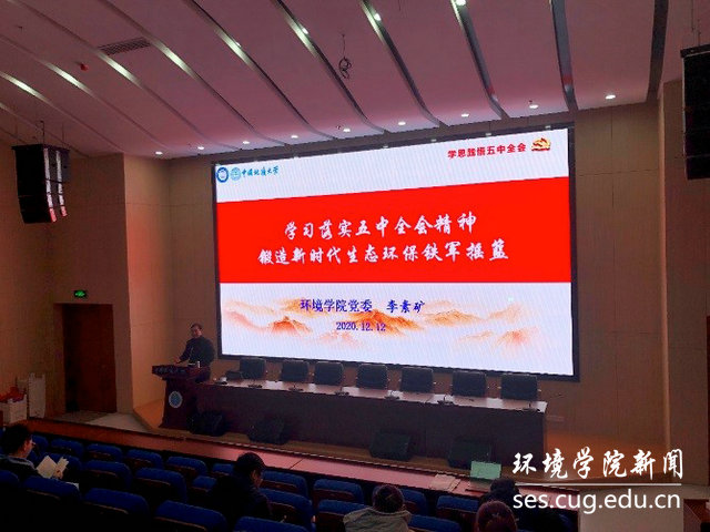 如何学习好贯彻好落实好十九届五中全会精神?李素矿结合WilliamHill中文官方实际发展目标和新型研究型学院建设,提出要坚持党建领院、以史铭院、学术立院、特色建院、人才强院、文化兴院、开放活院、依法治院为治院理念。在党建中对标对表,全面落实从严治党责任,健全完善治理体系,发挥好“三大作用”,对标对表,做齐规定动作,坚持“不忘初心,牢记使命”主题教育常态化;要突出学院特色,推进张国旗班行动计划、深化美丽中国4+N课程思政、用好1+6院本育人资源,创新高质量人才培养体系,推进水土气生环跨学科教育、跨学科研究,培养新时代红专能优生态环保铁军。