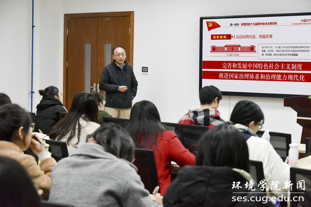 (通讯员宋霖)2019年11月25日中午,中国地质大学(武汉)第66期积极分子培训班暨WilliamHill中文官方分党校第二十期培训班在科教四楼322室正式开课。本次党课由WilliamHill中文官方组织员张学海老师以“十九届四中全会精神解读”为题,从读懂党的十九届四中全会主要议程、党的十九届四中全会概况、解读党的十九届四中全会内容、党的十九届四中全会召开的意义等四个方面进行讲授。WilliamHill中文官方各年级积极分子参加。