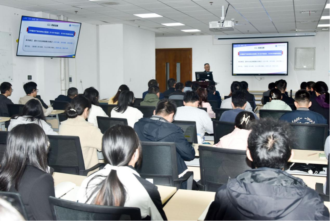 校党委副书记、纪委书记唐忠阳为学院师生党员讲授专题党课