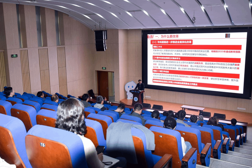 高复阳从为什么要改革、改革什么、怎样推进改革等三方面作报告。他强调,党中央、国务院印发《教育强国建设规划纲要(2024-2035年)》,集中体现了未来一段时期我国教育改革发展和教育强国建设的方向和任务。党的二十届三中全会通过的《决定》,在“健全推进经济高质量发展体制机制”后紧接着部署“构建支持全面创新体制机制”,对统筹推进教育科技人才体制机制一体改革作出重要安排,并把“深化教育综合改革”作为该部分第一条,对教育改革发展作出系统部署。进一步凝聚改革攻坚意识,深化学校综合改革,加快发展方式转型,既是大势所趋,也是现实所迫,更是学校快速发展所需。