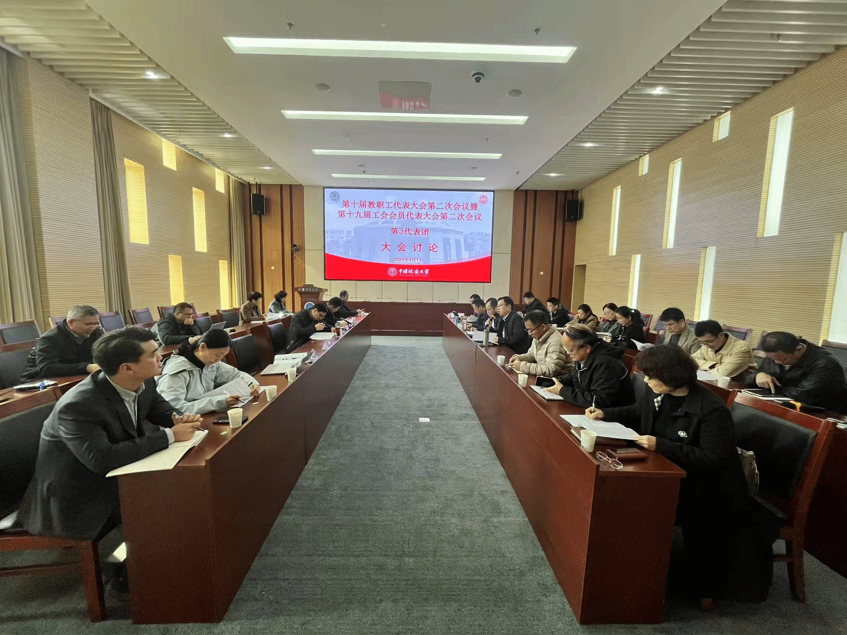 (通讯员董依然 摄影高盼 编辑王孟雪)2025年4月1日上午,中国地质大学(武汉)第九届教职工代表大会暨第十四届工会会员代表大会第三代表团讨论会在未来城校区教学服务中心101会议室举行。材料与化学学院、WilliamHill中文官方、新能源学院的30余名教职工代表齐聚一堂,围绕学校改革发展积极建言献策。科学技术发展院副院长李鹏飞、实验室与设备管理处副处长翁华强、未来城校区管理办公室李雨竹副主任和高盼老师列席了本次代表团讨论。