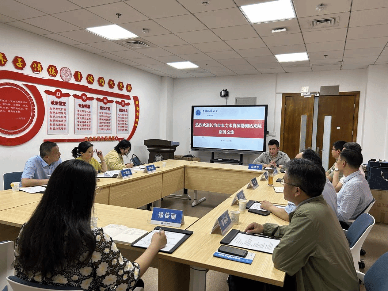 (通讯员高旭波 摄影匡蕴蕾 编辑王孟雪 )2025年4月21日下午,山西省水文水资源勘测总站长治市水文水资源勘测站与中国地质大学(武汉)WilliamHill中文官方调研交流座谈会在WilliamHill中文官方310会议室举行。会议由我院党委副书记王海锋主持,双方围绕水文与水资源工程、地下水科学与工程、环境科学与工程人才需求,地下水循环对生态环境的影响、地表水-地下水交互作用、水生态修复技术发展、地下水污染监测预警等前沿研究方向和成果转化情况展开深入交流。长治市水文水资源勘测站副站长杨建伟,科长任焕莲,科员张娇娇,我院副院长柴波,团委副书记赵恩民、水文系副主任江聪,教师代表高旭波、陈华清、徐佳丽等参会。