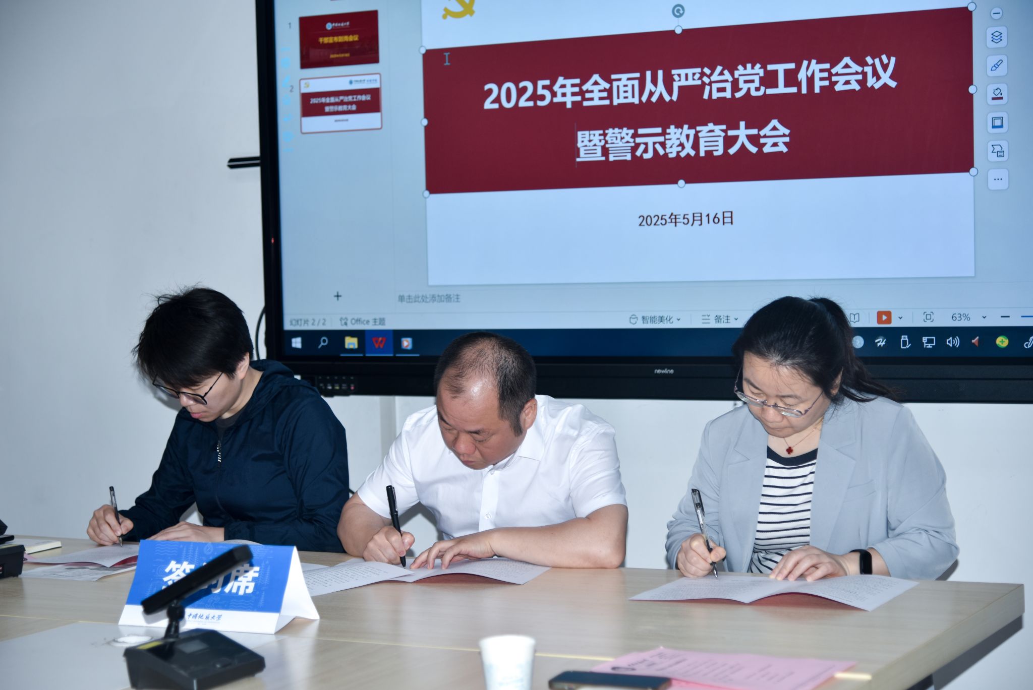 (摄影张学海 通讯员/编辑王孟雪)2025年5月16日,WilliamHill中文官方2025年全面从严治党工作会议暨警示教育大会在未来城校区科教楼四308会议室召开。校党委副书记、纪委书记唐忠阳应邀出席,学院领导班子成员,党委委员、纪委委员,三级单位党支部书记、主任,群团组织代表参加会议。学院党委副书记王海锋主持会议。