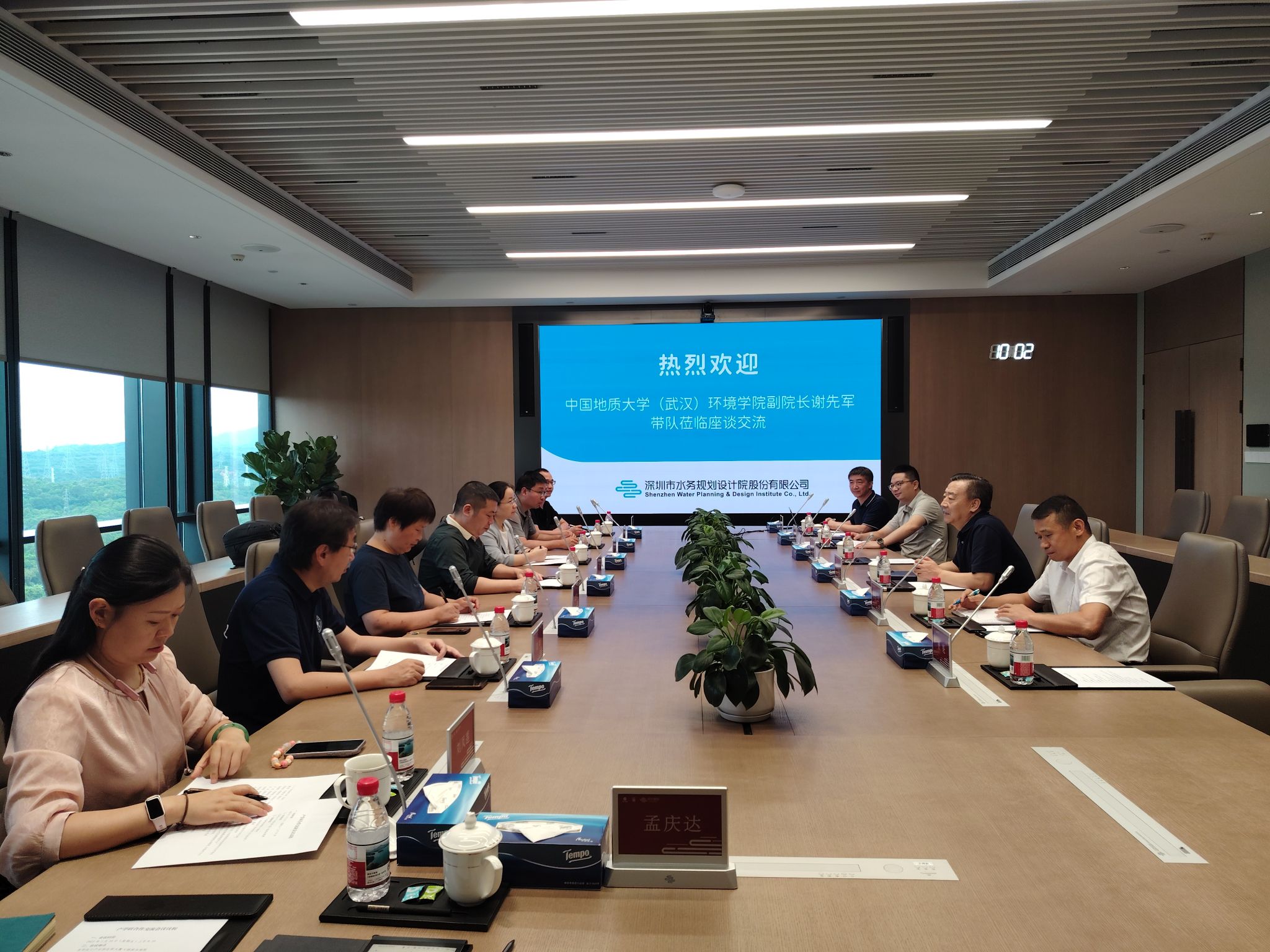 深圳市水文水质中心主任宋洪星,深圳地质科技创新中心主任张明,深圳市水务规划设计院股份有限公司党委副书记、副总经理陈宝京等分别介绍各自单位基本情况,交流相关业务领域的合作意向。