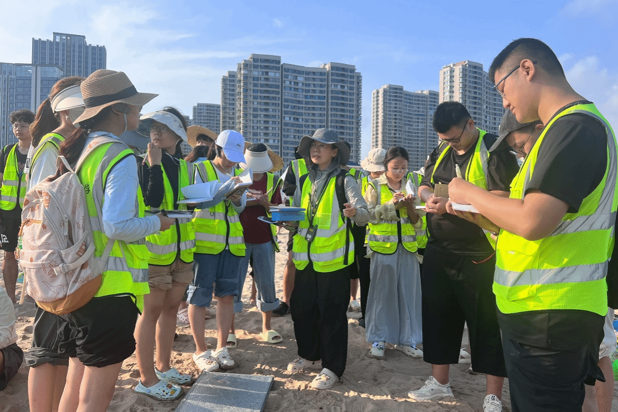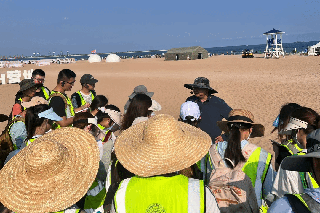 下午,各班在带队老师的带领下前往山东堡海滩进行路线教学,带领同学们学习沙质海岸的形成、波浪运动、沉积物组成及其分选磨圆等内容,并练习使用盐度计。