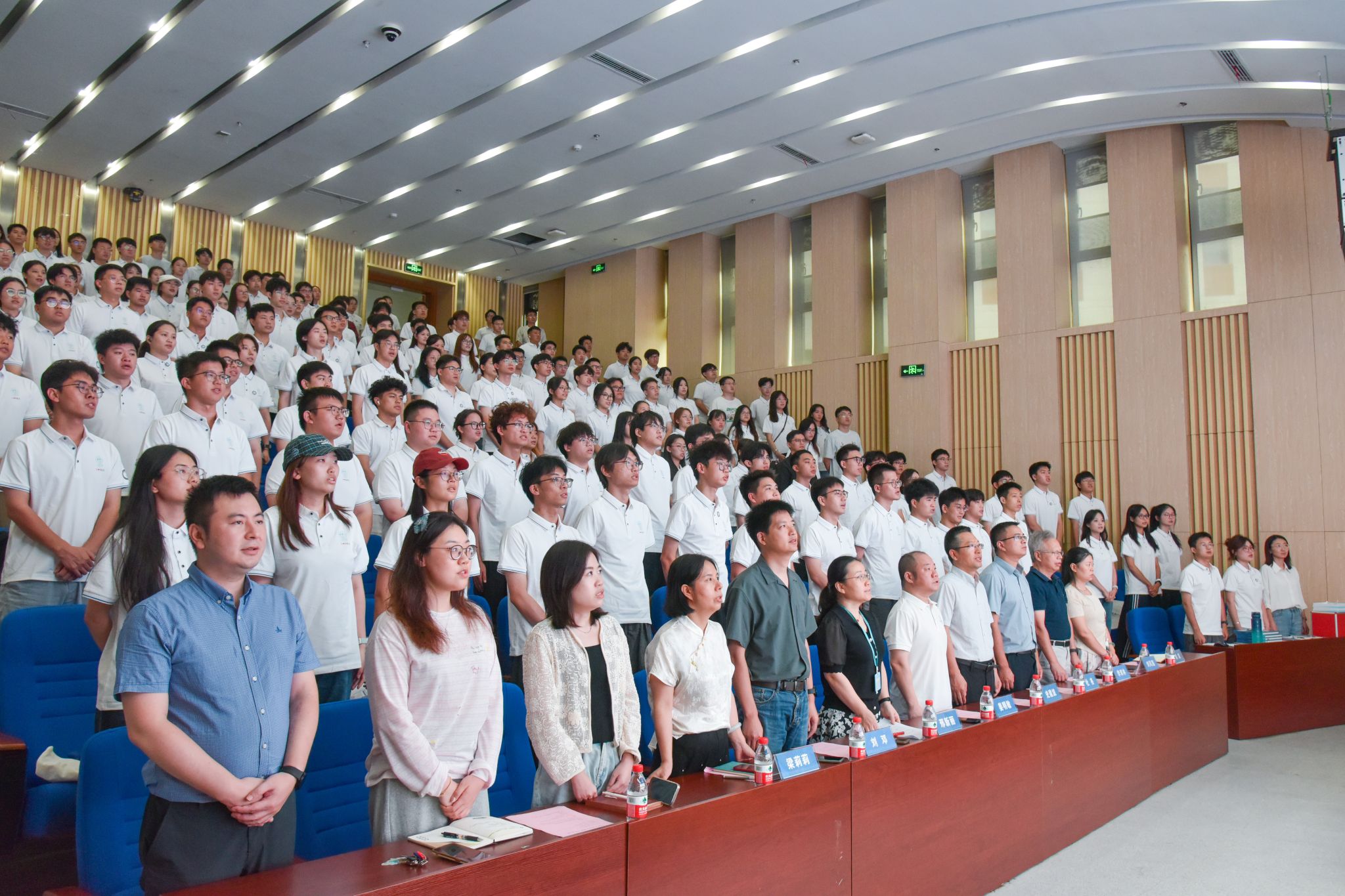 全体师生齐唱国歌。