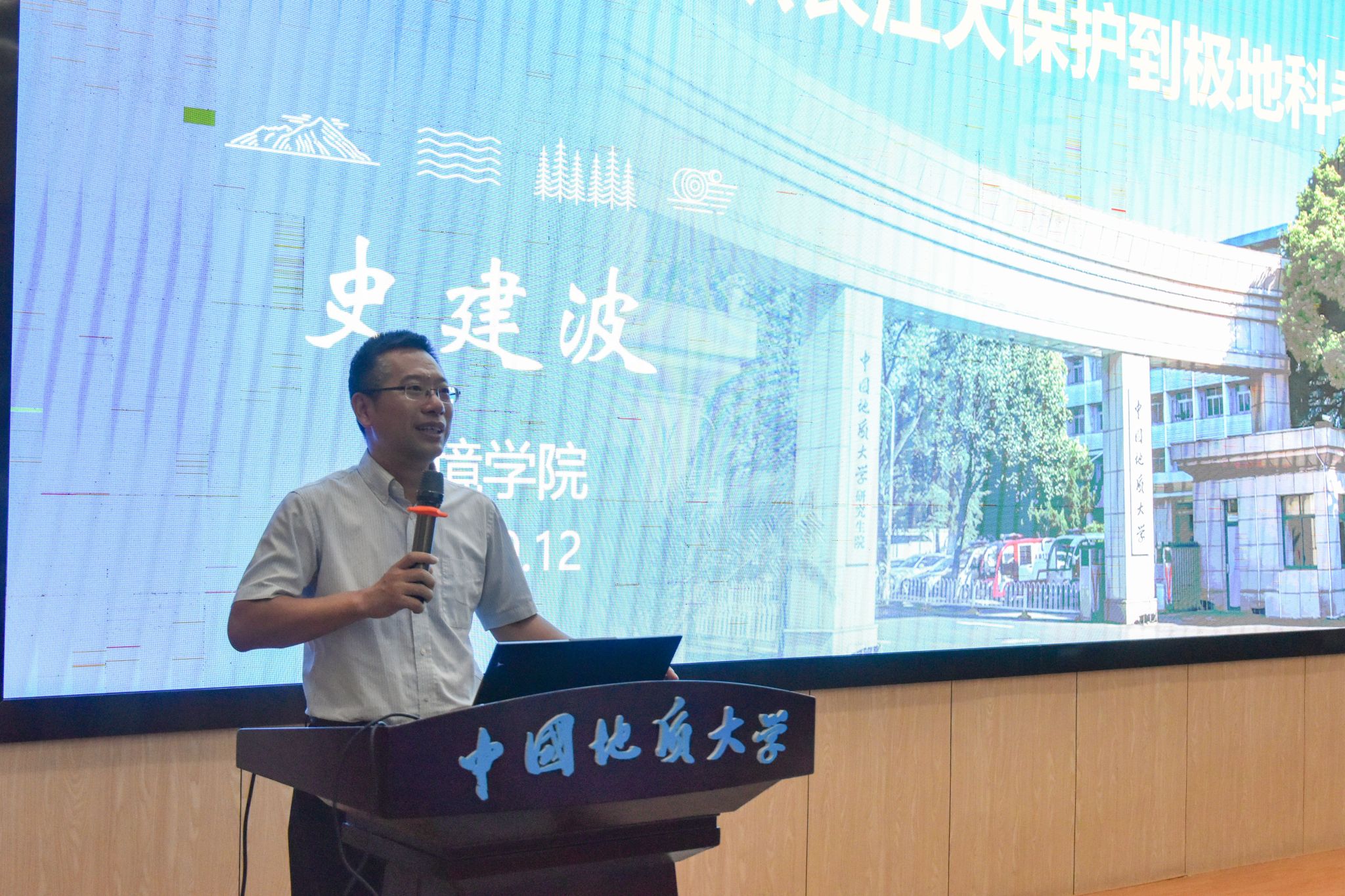 院长史建波教授以“健康环境,宜居地球:从长江大保护到极地科考”为题,为学生带来“开学第一课”。课堂上,史建波教授从长江大保护的实践讲到极地科考的征程,分享了自己在世界三极的亲身经历:在北极与北极熊的不期而遇、在南极与企鹅的奇妙缘分、在青藏高原冰川上的探索足迹。以自身见闻与实践为引,教育全体学生认识到校训精神的指引力量,南迁办学的坚韧精神,以及勇攀高峰的执着与育人摇篮的担当。他强调,同学们要传承地大品格,在科研征途上敢闯敢试、勇毅前行,走出属于自己的独特风采与精彩未来。