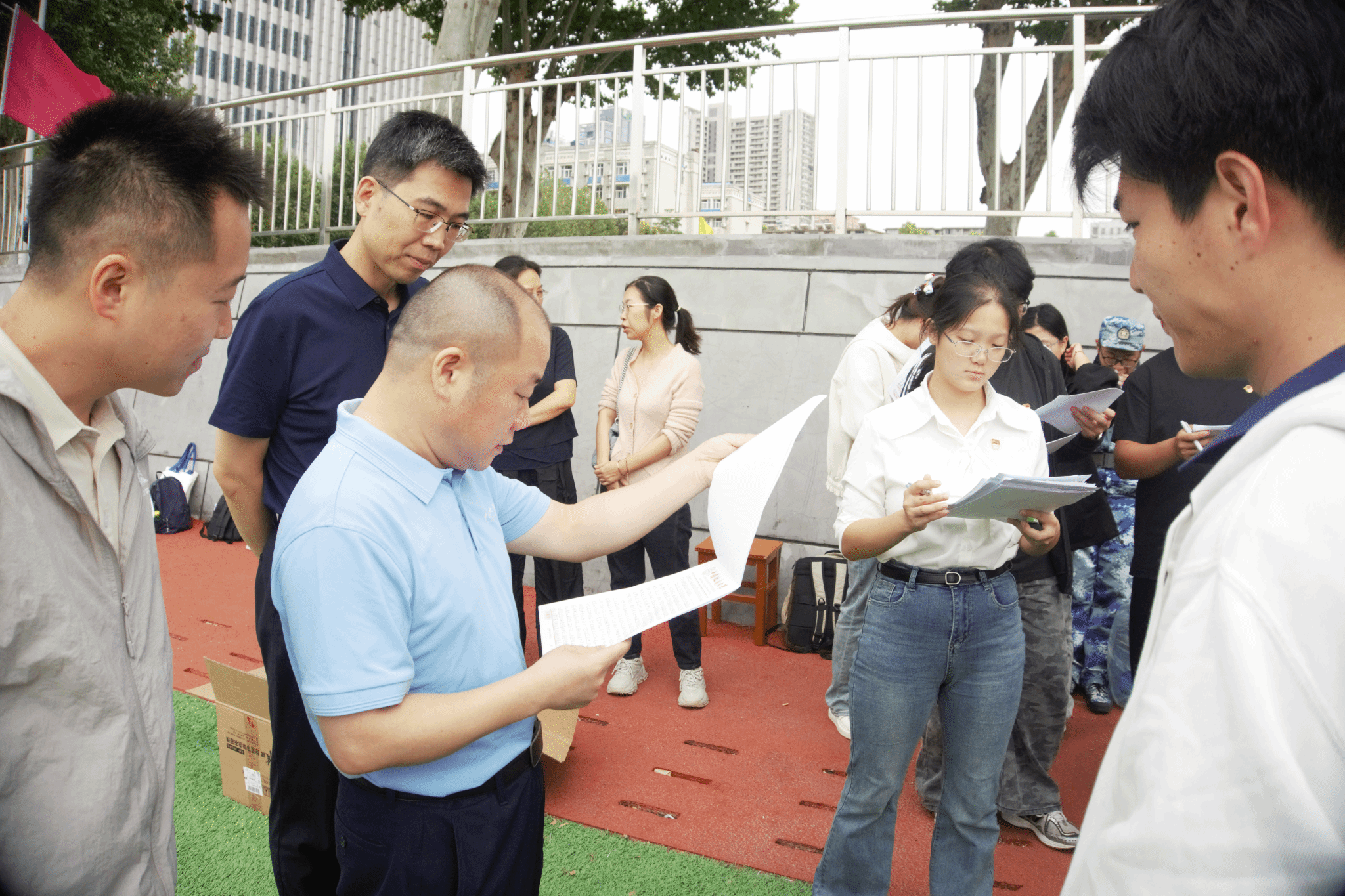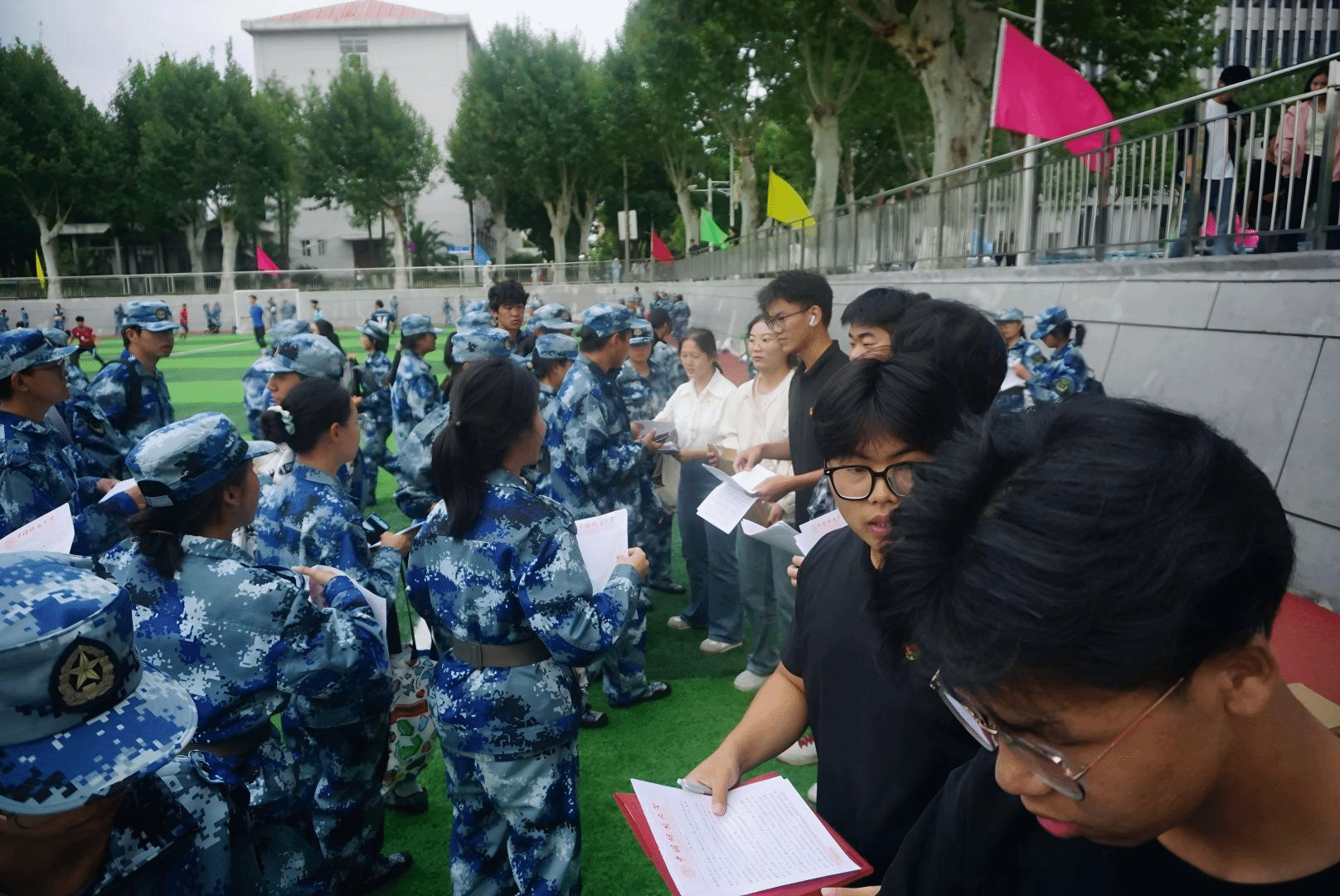 全体新生于9月8日至21日完成军训,磨练意志品质,适应大学学习生活节奏。学院党委书记姜明敏,副院长孔少飞,班主任崔艳萍、刘丹青、办公室主任刘凤莲等学院老师前往军训现场看望学生,并与带训教官交流,对他们的辛勤工作表示慰问和感谢。组建新生年级工作组,选拔班级临时负责人,设立新生意见反馈渠道,便于随时反馈问题,切实做到全方位、多层次关注新生成长与发展,使每一位新生都能感受到学院的关怀与温暖,帮助他们顺利开启大学生活。