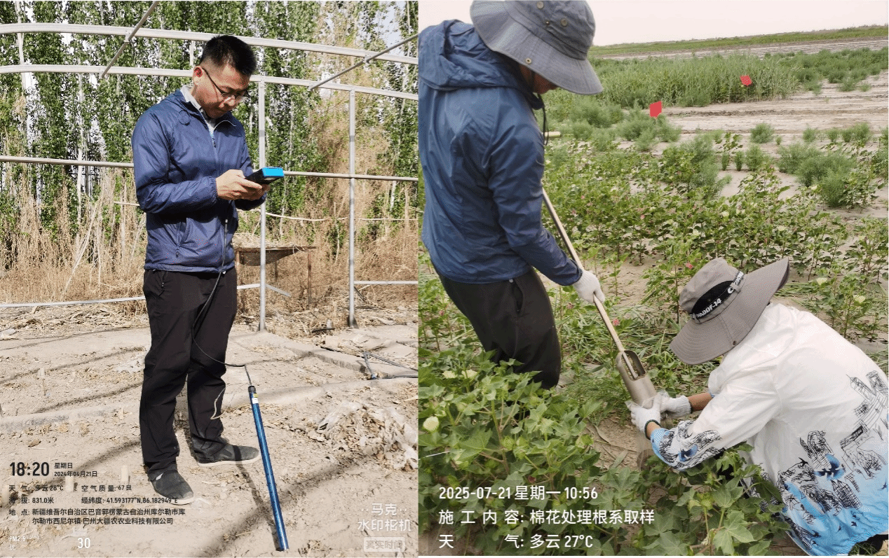 团队在新疆开展长期微咸水膜下滴灌试验剪影