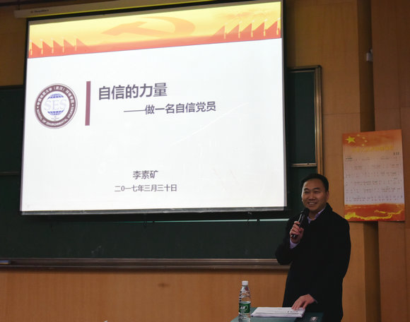 李素矿从自信的内涵功能、“四个自信”、做自信大学生、做自信党员、个人感悟点滴等方面进行了讲授。