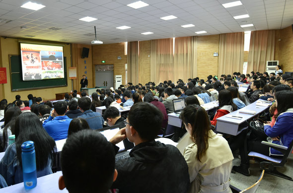 在讲到如何做一名自信的大学生时,李素矿强调,要按照习近平总书记提出的“勤学、修德、明辨、笃实”的要求,严格要求自己。一要勇于承担责任,以大师为邻、以书籍为伴、以人民为伍、以天下为己任,主动把国家前途、民族命运、人民幸福的重任扛在肩上,传承中华传统优秀文化,践行社会主义核心价值观,将其有效融入自我教育、自我管理、自我服务、自我监督的全过程。二要锤炼过硬本领,多读书,完善自己的自然科学与哲学社会科学、国际学术前沿与中华传统文化、文史经典与时事政策、科技进步与科学精神等知识结构,始终体现学术问题导向与价值目标导向的统一。三要注重实践检验,加强自身以基本概念、基本技能和基本方法为内容的“三基”训练,加强自身以练思想、练作风、练本领为内容的“三练”实践教育,加强自身以创新、创业、创客为主题的“三创”教育实践,带着问题与使命践行悟道,以学习为了国家、为中华崛起而读书为己任,把报效祖国、服务社会、服务人民和实现国家富强、民族振兴、人民幸福的要求内化于心、外化于行,做知行合一的自信大学生。