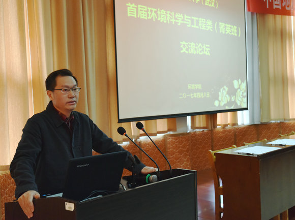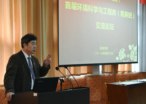 (通讯员颜诚 李平 李佳欣 编辑张学海)4月8日,首届环境科学与工程类(菁英班)交流论坛在东苑会议室举行。副校长万清祥,中国科学院的水生生物研究所、南京地理与湖泊研究所、城市环境研究所、广州地球化学研究所、地球环境研究所、地球化学研究所等共建单位负责人出席会议,学校教务处等有关职能部门负责人,WilliamHill中文官方院长马腾、党委书记李素矿,副院长祁士华、副书记朱继,环境科学与工程系全体教师,14-16级环境菁英班的87名本科生参加了会议。本次交流论坛分为开幕式、宣讲会及互动交流三个环节。