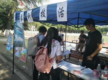 (左图为吴铮同学为前来的参观者讲解,右图为郑衍欣同学为前来的参观者讲解)