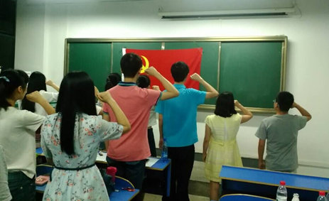 全体党员面对鲜红的党旗,举起右手,庄严肃穆的重温入党誓词:“我志愿加入中国共产党,拥护党的纲领,遵守党的章程,履行党员义务,执行党的决定,严守党的纪律,保守党的秘密,对党忠诚,积极工作,为共产主义奋斗终身,随时准备为党和人民牺牲一切,永不叛党。”