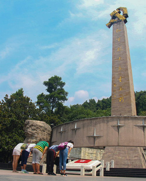 贵州的第一站来到了贵州大学,在贵州大学同学的引导下,团队参观了大学校园并且与学校负责党建工作的老师进行了党建工作经验的交流。第二站来到了贵州省遵义市遵义会议遗址,参观了长征纪念馆。在长征纪念馆,团队成员详细了解了长征路上的英雄事迹,观看了红军使用的物品。红军的这种为革命事业抛头颅洒热血的精神永远值得我们当代大学生学习。第三站来到了贵州省遵义市红军山景区,在这里不仅有如画的风景,更有令人肃然起敬的红军烈士纪念碑。在纪念碑下,队员们和游客为烈士们敬献花篮并鞠躬致敬,红军烈士们勇于为革命献身的大无畏精神激励着一代又一代青年学子。