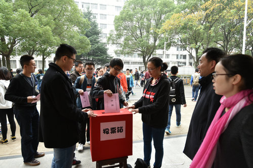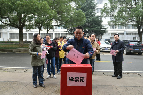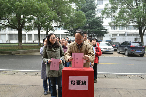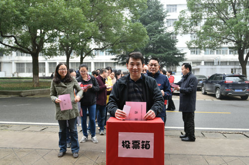 11月16日上午和中午,洪山区关山街第19选区第四选民小组(WilliamHill中文官方)组织选民在文华楼前对第十五届区级人大代表换届选举投票。第四选民小组组长、WilliamHill中文官方党委书记李素矿主持投票仪式,监票人张学海、崔艳萍,计票人左麦枝、孟国强对整个投票进行了监票和计票。 (张学海供稿)