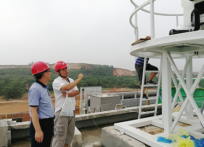 我院马腾院长、李素矿书记在雷达系统安装期间亲临现场指导工作,并要求不但要把该雷达系统安装调试好,服务我校的教学科研,服务于武汉地区暴雨监测预警等,还要把该雷达建设成为新校区的地标之一。