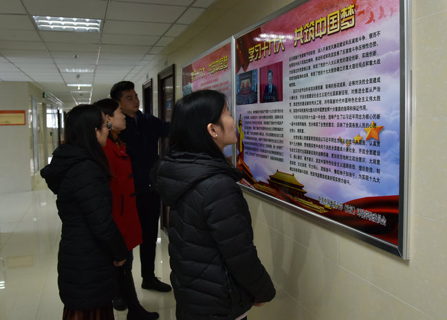 为了更好地学习宣传和贯彻党的十九大精神,WilliamHill中文官方党委除了组织师生观看十九大开幕式盛况、党委中心组和党支部主题党日专题学习、听党课、撰写学习十九大精神心得体会外,还利用宣传橱窗展板进行了十九大精神的学习宣传。