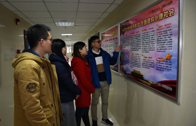 为了更好地学习宣传和贯彻党的十九大精神,WilliamHill中文官方党委除了组织师生观看十九大开幕式盛况、党委中心组和党支部主题党日专题学习、听党课、撰写学习十九大精神心得体会外,还利用宣传橱窗展板进行了十九大精神的学习宣传。 师生通过宣传橱窗学习十九大精神 师生通过宣传橱窗学习十九大关键词的解读