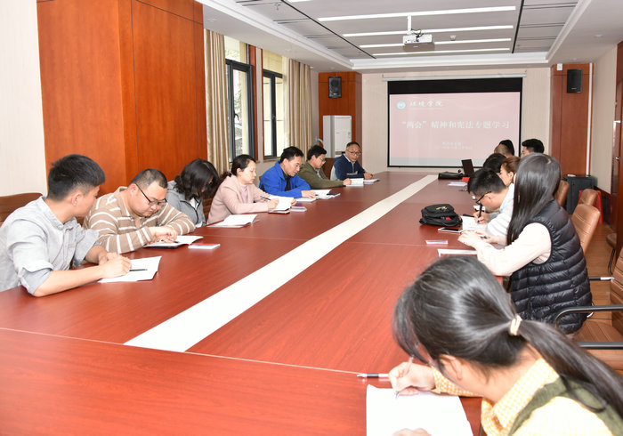 通过“两会”精神的学习,大家表示,要认真学习贯彻“两会”精神,结合学院实际,以习近平新时代中国特色社会主义思想为指引,把党的十九大提出的战略部署和“两会”精神转化为具体的工作任务,提高学院党建文化软实力和学术核心竞争力,切实为学院的事业改革和双一流建设凝心聚力,开拓进取,做出贡献。