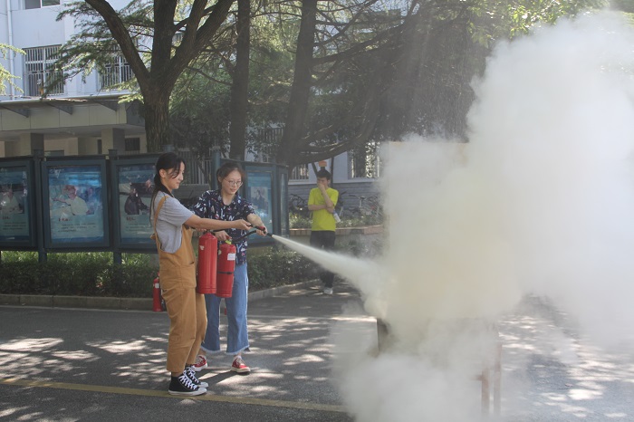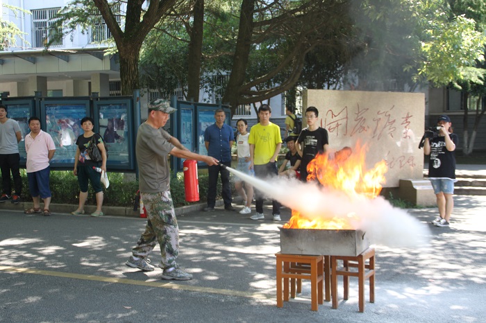 二是消防演练。消防科李洋副科长为师生做了“预防为主,防消结合”的主题宣传。李副科长详细地讲解了安全用电、火灾报警、火场自救以及灭火器使用等四个方面的注意事项,介绍了手提式灭火器的配置情况及使用方法,强调了不同灭火器的适用范围和使用时注意事项。WilliamHill中文官方的师生分别参与了干粉灭火器和二氧化碳灭火器的演练。