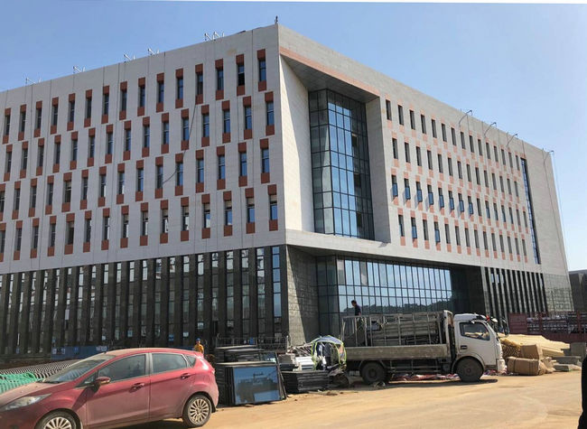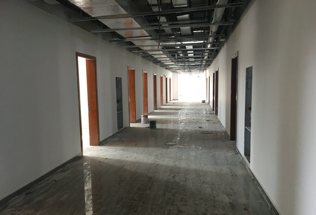 进入环境楼,潘欢迎带领大家从一层到六层,从南楼到北楼,重点介绍了环境楼的功能布局,查看了报告厅、会议室、实验室、办公用房等房间的规划设计和施工情况等。