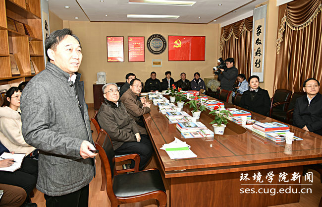 在学院党员之家,李素矿以“推进三全育人 实现立德树人”为题,从努力锻造团结和谐、追求卓越的育人共同体;科学构建水土气生大环境学科群一体化育人体系;积极探索环境地球科学类课程思政模式;精细打造“1+6”党建、思政、文化育人载体等四个方面,汇报了我院党建、思想政治工作和“三全育人”综合改革试点工作进展。