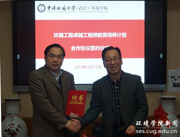 温汉辉立足于清远市,针对山区石漠化等类似地质环境问题,从科研立项、人才队伍建设、企业培训等方面阐述了企业的需求。马腾院长介绍了WilliamHill中文官方学科专业,科研和师资情况,围绕联合开展本科生培养、粤港澳大湾区地质环境调查、广东省科研申报等工作提出了合作计划。双方代表马腾院长与温汉辉队长共同签署了“环境工程卓越工程师教育培养计划合作协议”,同时马腾院长也代表学院向广东省有色金属地质局九四〇队颁发了企业导师聘书。