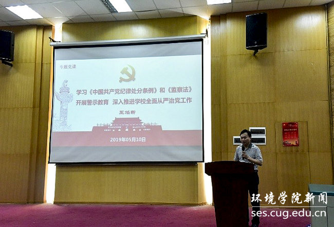 李素矿领学。他分别解读了《中国共产党纪律处分条例》《中华人民共和国监察法》的颁发背景、实施意义、主要内容要点。同时采用鲜活案例,结合高校自身实际,重点对政治纪律、组织纪律、廉洁纪律、群众纪律、工作纪律、生活纪律等六大纪律要求和典型案例进行了讲解,起到了警示教育作用。他强调《中国共产党纪律处分条例》和《中华人民共和国监察法》是深入推进全面从严治党和反腐败工作的重要法律法规,是管党治党的尺子和全体党员、全体公职人员的行为底线,此次政治学习目的就是强化警示教育。他要求,广大教职工要深刻领会条例和监察法的核心要义和内涵精髓,提高政治站位、强化法治思维、守住底线,不越红线,将廉洁自律规范内化于心、外化于行,紧密联系自身工作实际自觉维护法律的权威,推进全面从严治党、从严治教,营造风清气正的工作、学习和生活环境和育人氛围。