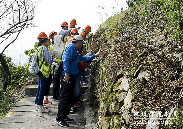 实习带队老师汪丙国讲解地质现象