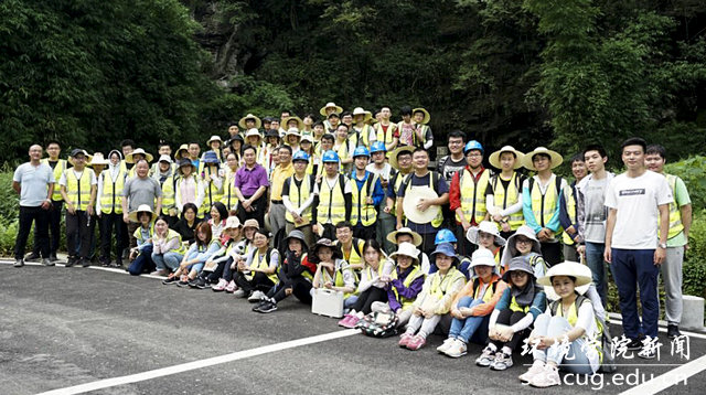 李素矿、姜明敏与生物科学菁英班实习师生在链子崖合影
