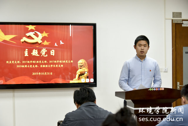 2017级学硕1班党支部斯南雍西同学、2017级学硕2班党支部江南同学、实验班大学生党支部张正煊同学、2019级博士党支部张林同学就“强化理想信念,牢记初心使命”“牢记光荣历史,奋力追梦圆梦”“继承革命光荣传统,走好新时代长征路”3 个专题进行集中学习交流。