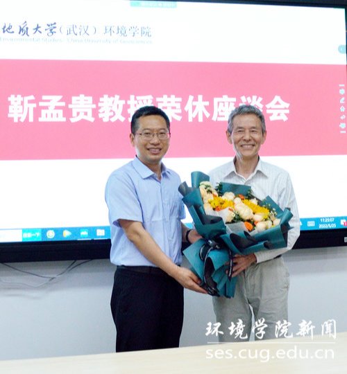 学院党委书记李素矿总结讲话,感谢靳孟贵教授执教40年中为水文地质专业威廉希尔和WilliamHill中文官方改革发展做出的突出贡献。他说,WilliamHill中文官方从1952年水文地质学科“一枝独秀”,到现在水-土-气-生-环“五朵金花”,都离不开像靳教授一样一代一代环境人的汗水与心血、传承与创新。他说,靳老师德艺双馨,40年如一日,始终保持爱岗、爱生、爱家、爱校、爱院的育人情怀,履行为党育人、为国育才的初心使命,培养一届届红专能优生态环保铁军。作为湖北教学名师坚持教书育人,积极投身“三全育人”综合改革;作为学科带头人,投身专业威廉希尔、教育教学管理、人才培养、科学研究和社会服务;作为共产党员,积极投身学院全国党建标杆院系“双创”工作,指导张国旗班党支部双创工作,是人师与经师的楷模,是大家学习的榜样。他勉励学院青年教师要不忘初心、牢记使命,传承红色基因,发扬“上善若水”精神,不断追求卓越,为研究型学院建设、“双一流”建设、党建标杆建设、“三全育人”综合改革等做出更大的新贡献,迎接党的二十大胜利召开,向建校70周年献礼。他希望靳教授持续关心关注学院今后改革发展,多为学院、系发展建言献策,多关心指导青年教师。祝愿靳教授退休生活红红火火,身体健康,阖家幸福。