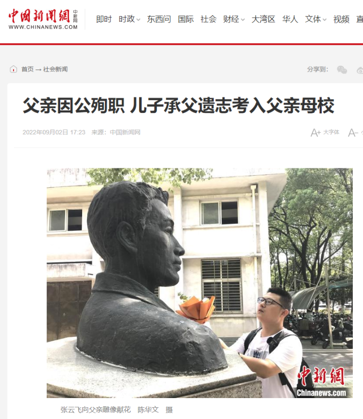 英雄父子的感人故事,在报纸、电视、网络、微信、微博、抖音等不同的媒体“刷屏”,广大读者和网友纷纷点赞。太多的媒体平台进行报道,这里无法一一展示。