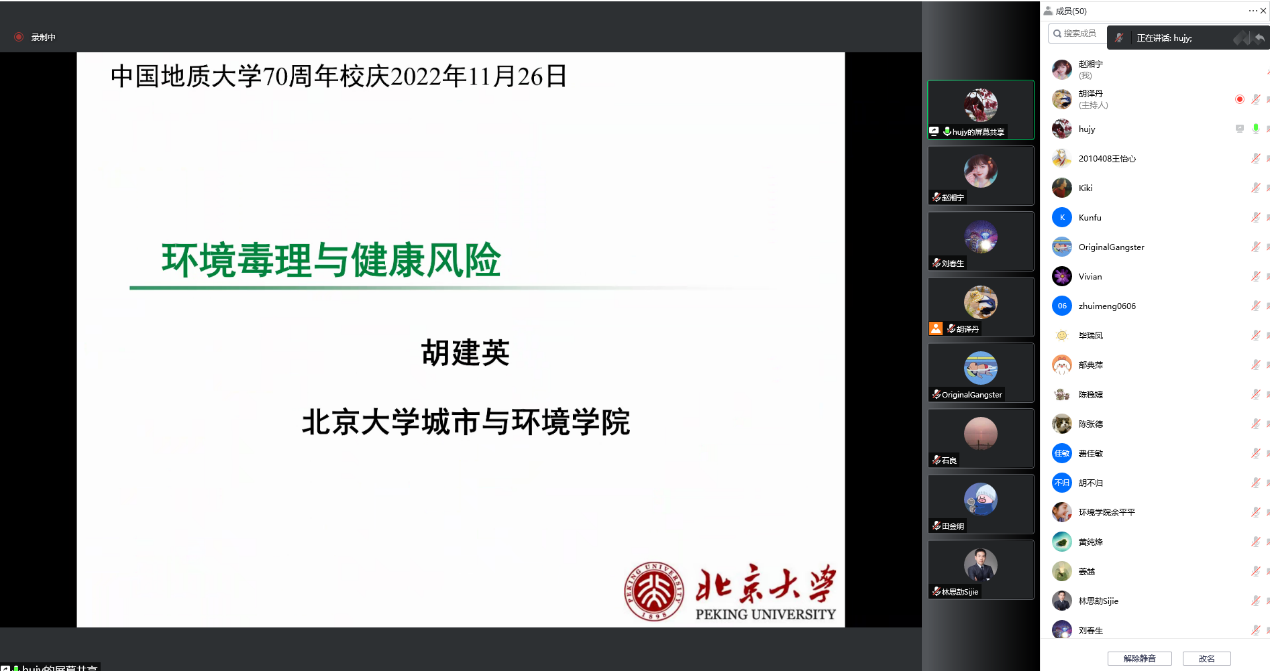 (通讯员杨涛 刘春生 编辑张学海)应WilliamHill中文官方刘春生教授邀请,11月26日,北京大学城市与WilliamHill中文官方胡建英教授线上作题为《环境毒理与健康风险》的学术报告。该报告是我校校庆七十周年系列学术报告活动之一。刘春生教授主持报告会。
