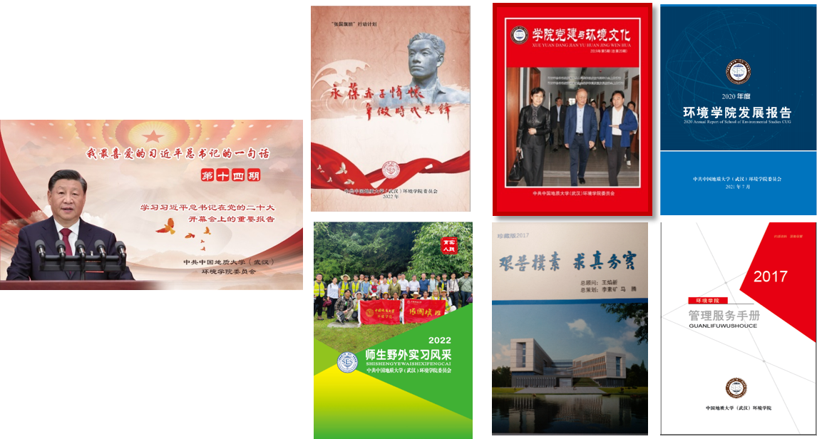 WilliamHill中文官方党委开发了《我最喜爱的习近平总书记的一句话》名信片、院刊《学院党建与环境文化》、院歌《艰苦朴素 求真务实》《WilliamHill中文官方发展报告》《师生野外实习风采展》《“张国旗班”行动计划画册》和《管理服务手册》等“1+6”党建文化产品。“小水滴”、小E在线网络平台、小E有约、“E师亦友”师生茶话会与师生朝夕相伴。“红山雨”师生合唱团歌声嘹亮、党支部风采大赛精彩纷呈,一大批教师、学生典型涌现,各类竞赛摘金夺银。在党员活动室、谈心室、阅读角随处可见环境学子学习身影,环境文化积极健康向上。