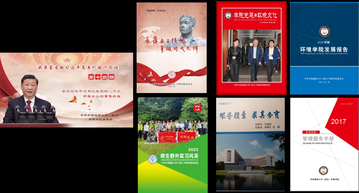 学院开发了院刊、院歌、发展报告、实习风采展、张国旗画册、服务手册、名信片等“1+6”党建文化产品,记录学院党建的生动实践和师生奋斗足迹,讲述新时代生态环保铁军育人故事。“小水滴”、小E在线网络平台、小E有约与师生朝夕相伴。“红山雨”师生合唱团歌声嘹亮、党支部风采大赛精彩纷呈,一大批教师、学生典型涌现,各类竞赛摘金夺银,从点上出彩到面上开花,环境文化一片欣欣向荣,蒸蒸日上。