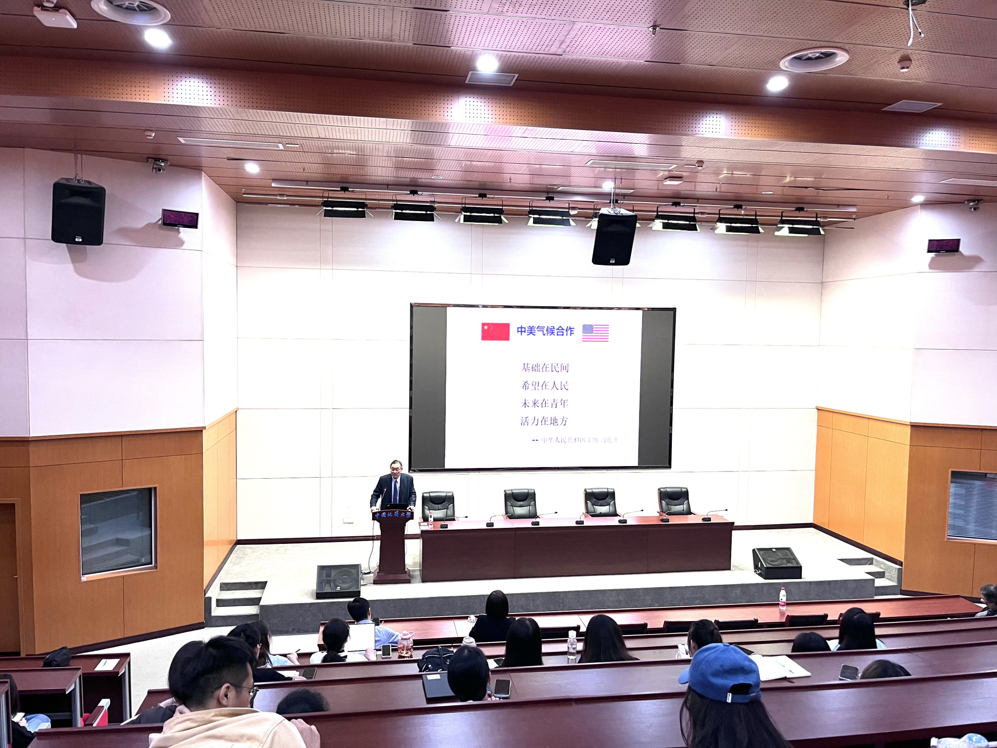 (通讯员杨涛 张愫恒 编辑何娟)应中国地质大学(武汉)校长王焰新院士邀请,10月30日下午,在南望山校区东教楼A0116学术报告厅,美国布莱恩特大学前副校长、斯迈利环境冠名讲席教授、哈佛大学中国环境、能源和经济综合研究项目高级研究员、Radcliffe学者杨洪教授来校作题为《全球气候危机下的大学应对策略》的学术报告。副校长王力哲教授主持报告会。