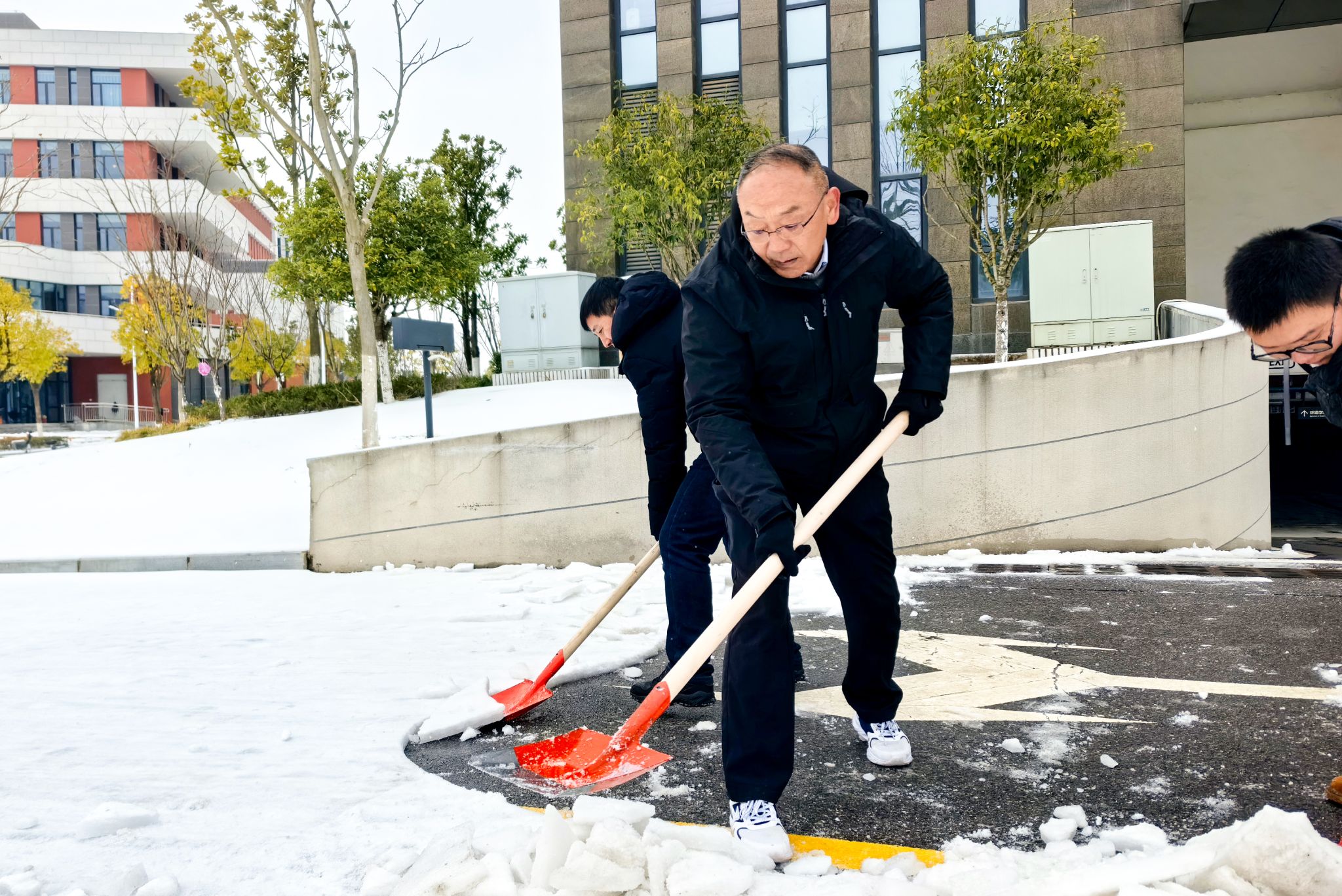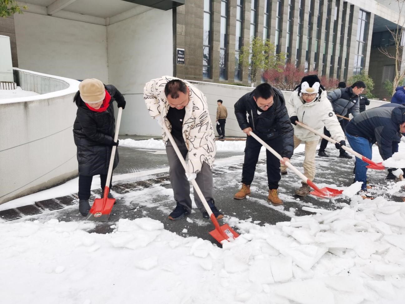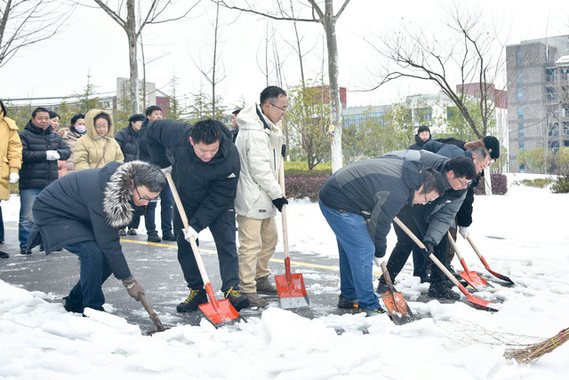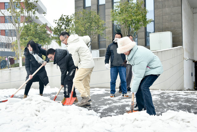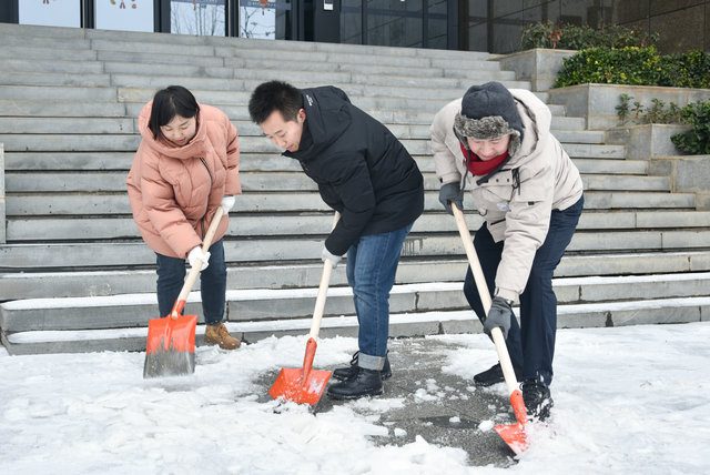 道路冻结,铲除困难。学院领导坚守岗位、靠前指挥,党员干部冲锋在前,学院师生积极行动,门卫物业赶来助战。经过师生一上午奋战,顺利清除了WilliamHill中文官方大楼西门、南门、车库入口等主要出入口的冻冰积雪,清扫出一条条“温暖平安路”,为师生出行筑牢安全屏障。