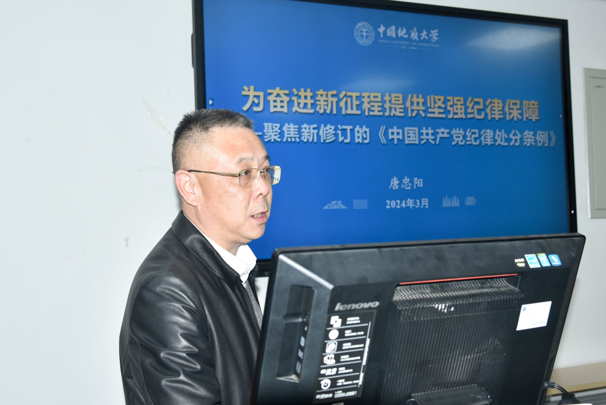 (通讯员/编辑何娟 摄影张学海)2024年3月26日上午在科教楼四347报告厅,校党委副书记、纪委书记唐忠阳以“为奋进新征程提供坚强纪律保障——聚焦新修订的《中国共产党纪律处分条例》”为题,为WilliamHill中文官方师生讲专题党课。WilliamHill中文官方领导班子成员,三级单位班子成员、院直全体党员,全体师生党支部书记、支部委员等参加学习。