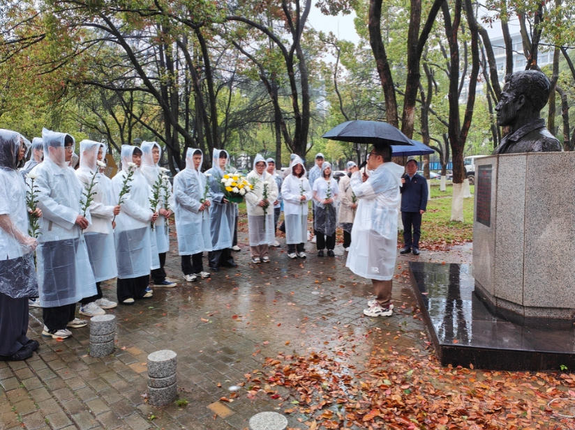 (转自武汉教育电视台)4月2日上午,我院组织师生在水文地质专业优秀校友张国旗的雕像前开展清明祭扫活动,我院硕士研究生、张国旗的儿子张云飞以及张国旗班的部分师生参加活动。