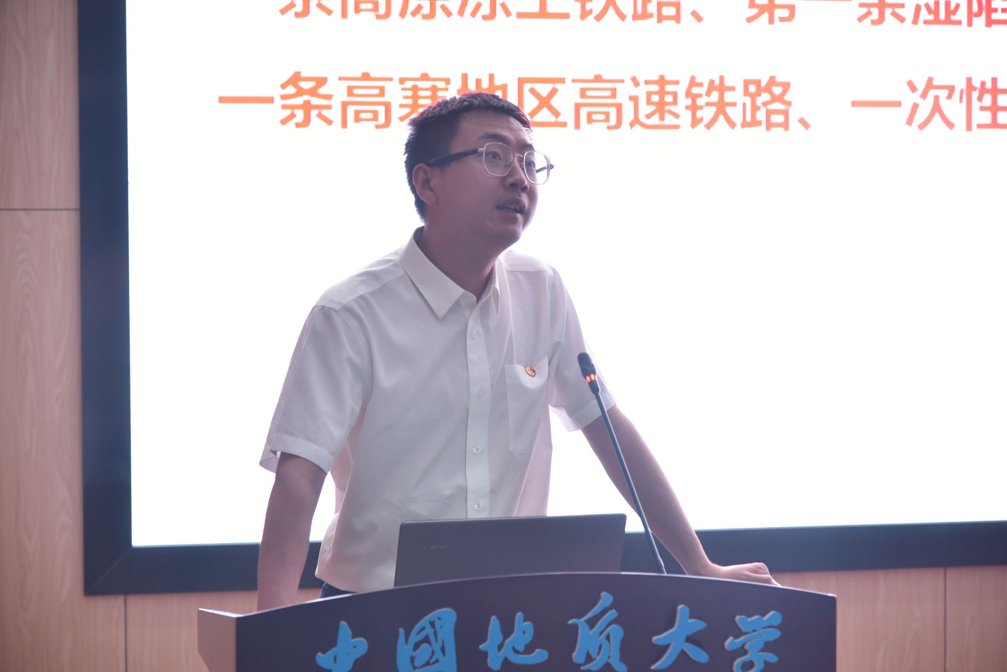 罗锋以《正青春,我担当》为题,与青年师生做分享交流。他从个人的学习和工作经历讲起,介绍高原铁路规划建设历程与意义,重点介绍了他所参与建设的川藏铁路的工程概况,通过一幕幕生动的镜头讲述高原勘测工作的小故事。他用“外表粗犷、内涵丰富,外业扎实、内业细致,外示静默、内心强大”24个字概括自己的成长感悟,为同学们分享了诸多宝贵经验和建议。