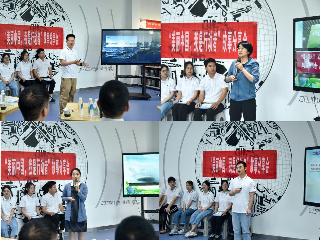 “美丽中国,我是行动者”故事分享会在未来城校区倍阅书店举行。2022级生物学专业硕士研究生刘源用他和地大学子的摄影作品讲述“看绿水青山”,以记录世界万千的感触回应一名地质人和环境人的初心使命。生物科学与技术系杨晓菁副教授用记录新老两个校区鸟儿的声音讲述“听鸟儿欢歌”,分享聆听来自地大校园的自然故事。大气科学系赵树云副教授从云朵的形态和科学观云看云的视角,讲述“望风云变幻”的气象观测和气象科普故事。2019级地下水科学与工程专业博士研究生苏丹辉用他的身体力行实践“行万里河山”,讲述与导师周建伟教授及团队驰援青海省民和县、甘肃省积石山县地震灾区的故事。
