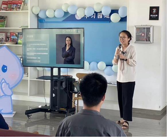 茶话会期间,生物系2003级毕业生钟淑梅校友发表回校感想,勉励同学们继续努力拼搏,并接受了毕业生代表赠送的生物系教师科普作品《地大花鸟集》。