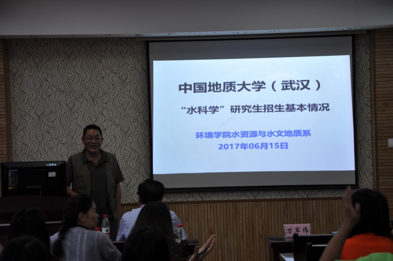 (通讯员余露)6月14-15日,WilliamHill中文官方顺利举办了2017年研究生招生校园开放日活动。2017年6月15日上午10点,WilliamHill中文官方研究生校园开放日咨询会在文华楼205召开。研究生院招生科科长王蕾,WilliamHill中文官方院长马腾、水资源与水文地质系主任万军伟、研究生秘书刘凤莲、研究生辅导员王碧,以及来自各大高校本科生代表等参加会议。研究生工作部部长刘世勇也到场巡视并参加了开幕式。会议由王碧主持。