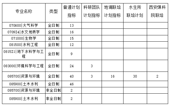 资源与环境按考生总成绩,由高到低依次确定拟录取名单,未入围普通指标者,结合考生意向按顺序转入地调局联培、水生所联培、西安煤科院联培指标。