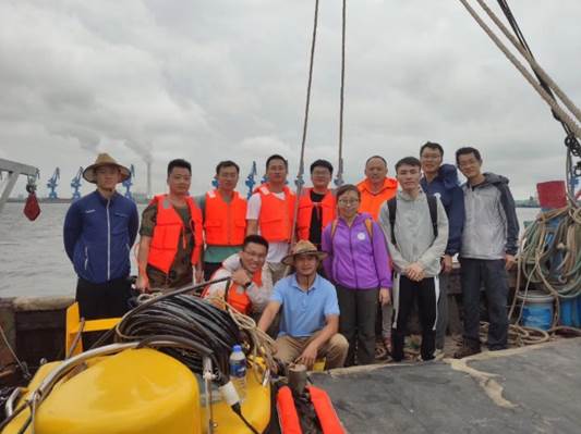 北戴河实习基地的新闻播报员 联合天津地质调查中心在海上勘测船拍摄