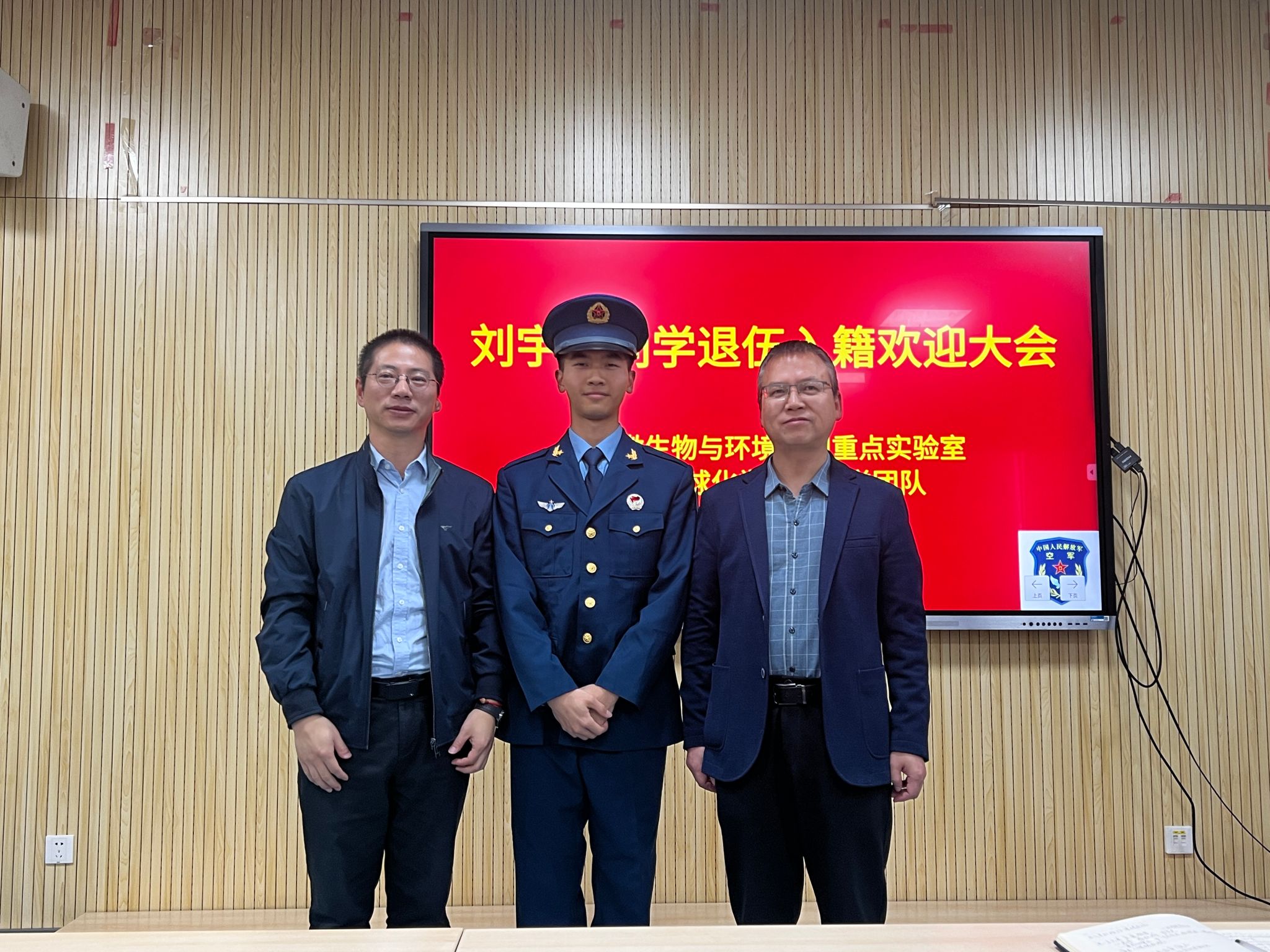 团队教师代表邢新丽教授、孔少飞教授、研究生会代表侯碧茹分别讲话,欢迎刘宇杰同学的归来,希望刘宇杰在新的学习阶段继续发扬军人的优良传统,在碧水蓝天的生态环境保护主战场取得成绩,为环境保护事业贡献力量。